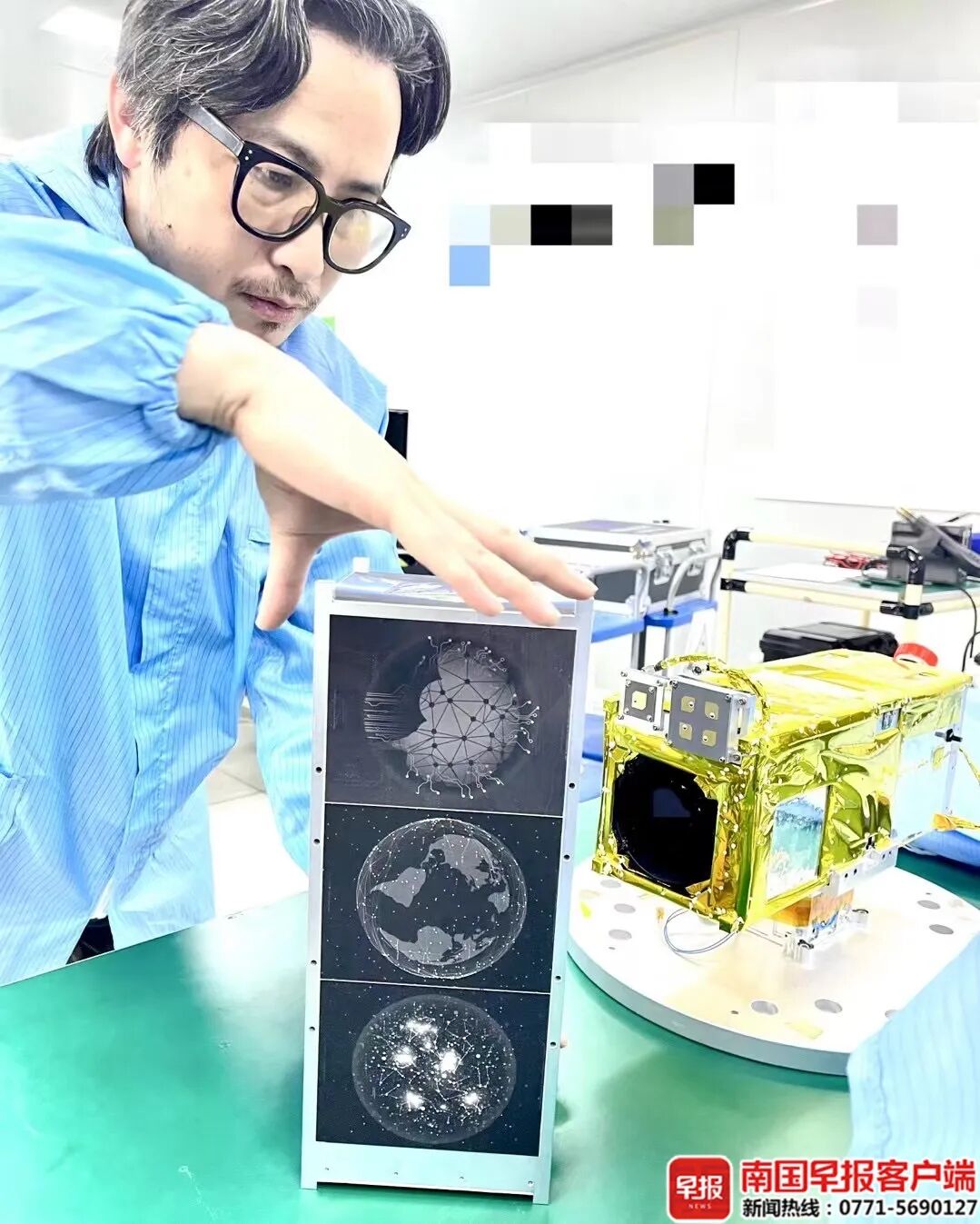 岳路平介绍,卫星配备的屏幕可呈现艺术作品画面,搭载的拍摄设备可将屏幕中的画作与太空背景同框记录,将相关影像回传地球,最终在美术馆中面向公众展出。